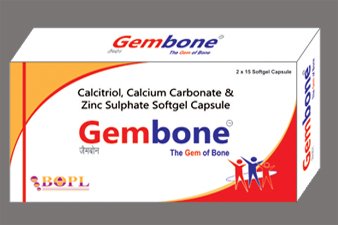 Gembone is The Best Value Addition Calcium Therapy Gembone is known as Gem of Bone Gembone Treated for Osteoporosis , Postmenopausal Osteoporosis , Body ache , Chronic backache & Shrinking height . Calcitrol in Gembone Ensures calciu m absorption & retard bone loss. Calcium in Gembone Meet the increased need of calcium . Zinc in Gembone Helps bone mineralization . Addition of Zinc & Calcium in Gembone synergistically work with Calcitrol in formation of Bone.