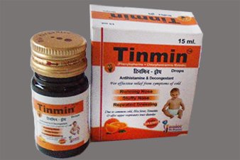 Known for its magical touch with fruity orange flavor . Tinmin is Antihistamine & Decongestant . Tinmin gives effective relief in just 30 minutes from symptoms of Common Cold , Running Nose ,Stuffy Nose ,Repeated Sneezing , Allergic Rhinitis , Sinusitis & other upper respiratory tract disorder . Tinmin is available in syrup, Drops & tablet form.